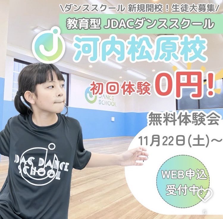 PARKS1FにあるSTUDIO PARKSにてJDACダンススクールの体験会がスタートしました。22日、23日はサニー・シャイン・スターのお子様向けクラスの体験会。25日には大人クラスの体験会もスタートします。 是非お気軽にご参加くださいね キッズダンススクール・教室なら河内松原校|大阪府松原市 タグ:jdacダンススクール